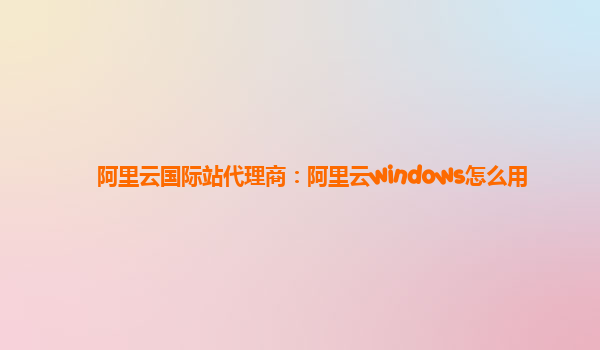 阿里云國際站代理商:阿里云Windows怎么用