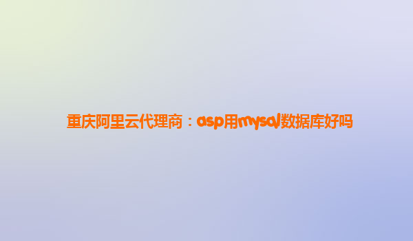 重慶阿里云代理商:ASP用MySQL數(shù)據(jù)庫好嗎?