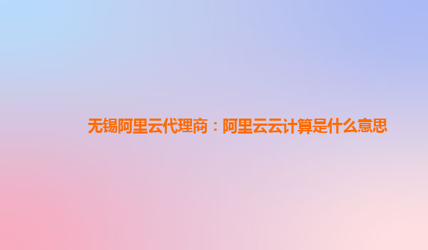 無錫阿里云代理商:阿里云云計(jì)算是什么意思
