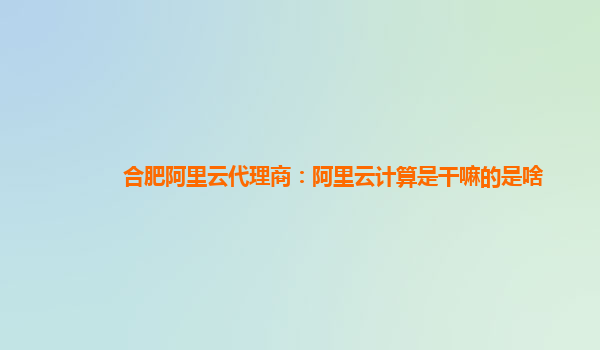 合肥阿里云代理商:阿里云計算是干嘛的?