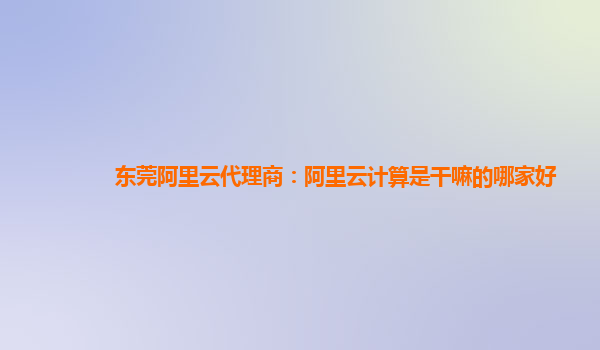 東莞阿里云代理商:阿里云計算是干嘛的?哪家好?