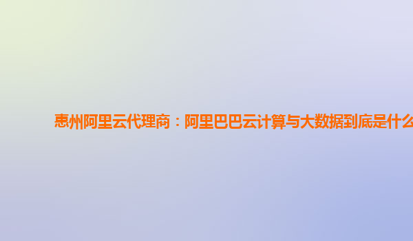 惠州阿里云代理商:阿里巴巴云計算與大數(shù)據(jù)到底是什么