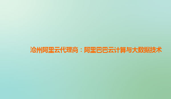 滄州阿里云代理商:阿里巴巴云計(jì)算與大數(shù)據(jù)技術(shù)