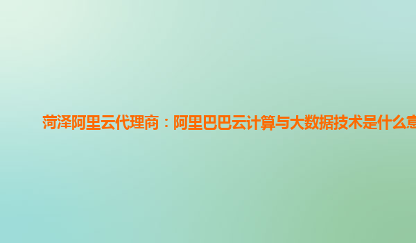 菏澤阿里云代理商:阿里巴巴云計算與大數(shù)據(jù)技術(shù)是什么