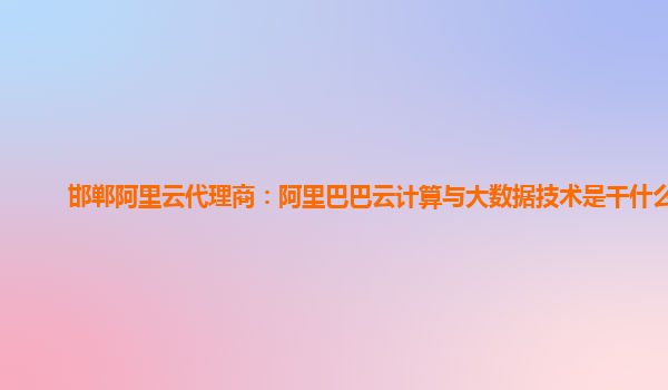 邯鄲阿里云代理商:阿里巴巴云計(jì)算與大數(shù)據(jù)技術(shù)是干什么的