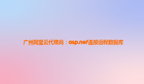 廣州阿里云代理商:ASP.NET連接遠(yuǎn)程數(shù)據(jù)庫(kù)的優(yōu)勢(shì)與實(shí)現(xiàn)