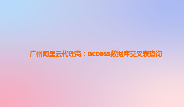 廣州阿里云代理商:Access數(shù)據(jù)庫交叉表查詢