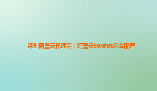 深圳阿里云代理商:阿里云CentOS怎么配置