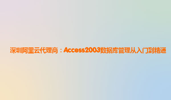深圳阿里云代理商:Access2003數(shù)據(jù)庫管理從入門到精通