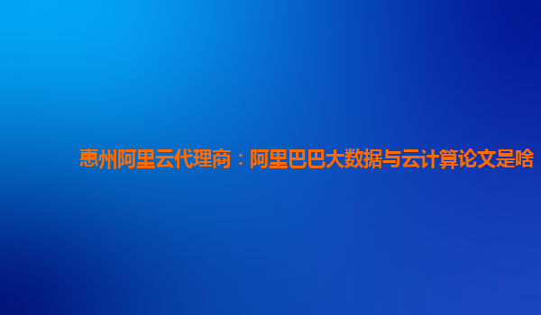 惠州阿里云代理商:阿里巴巴大數(shù)據(jù)與云計算論文