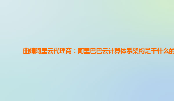 曲靖阿里云代理商:阿里巴巴云計算體系架構介紹