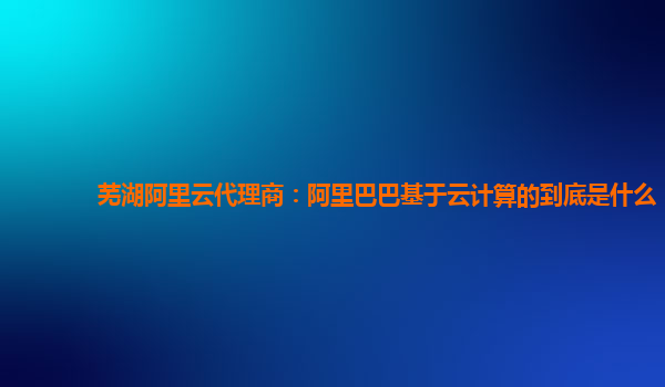 蕪湖阿里云代理商:阿里巴巴基于云計算的到底是什么