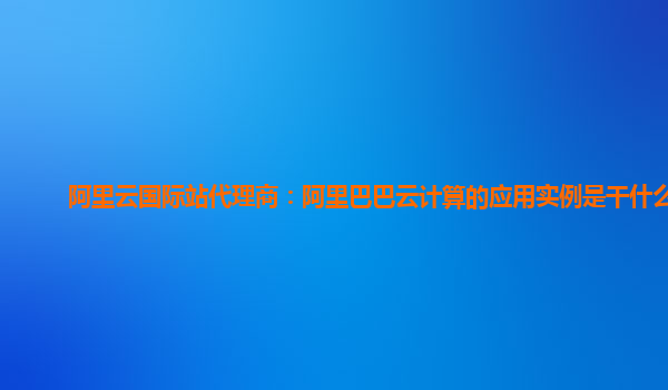阿里云國(guó)際站代理商:阿里巴巴云計(jì)算的應(yīng)用實(shí)例是干什么的