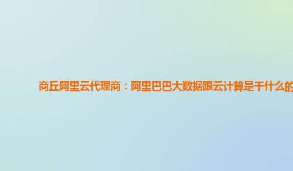 商丘阿里云代理商:阿里巴巴大數(shù)據(jù)跟云計算是干什么的