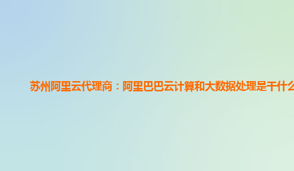 蘇州阿里云代理商:阿里巴巴云計算和大數(shù)據(jù)處理是干什么的