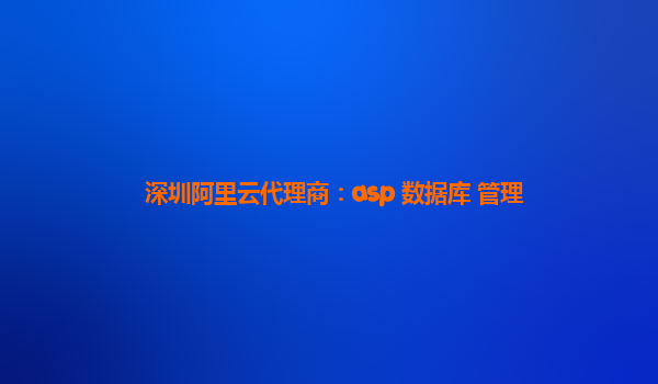 深圳阿里云代理商:ASP數(shù)據(jù)庫(kù)管理