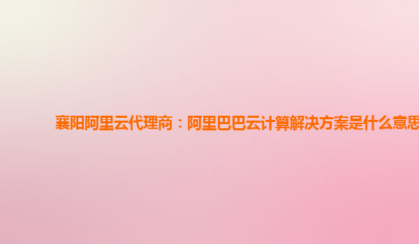 襄陽(yáng)阿里云代理商:阿里巴巴云計(jì)算解決方案是什么意思