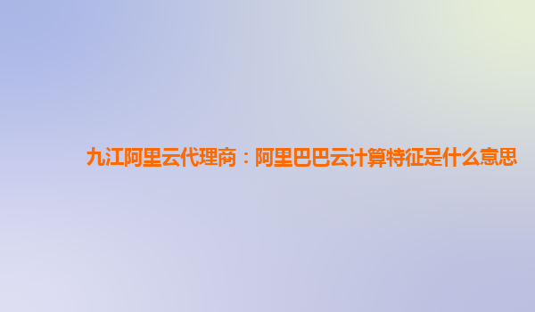 九江阿里云代理商:阿里巴巴云計(jì)算特征與優(yōu)勢(shì)解析
