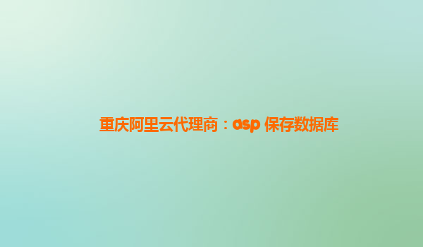 重慶阿里云代理商:ASP保存數(shù)據(jù)庫的優(yōu)勢與實踐
