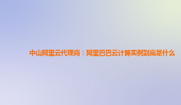 中山阿里云代理商:阿里巴巴云計算實例到底是什么