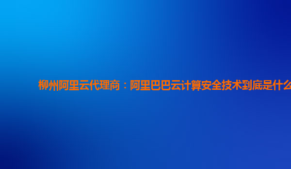 阿里巴巴云計算安全技術(shù):柳州阿里云代理商視角