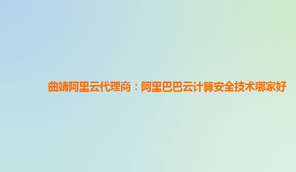 曲靖阿里云代理商:阿里巴巴云計算安全技術哪家好
