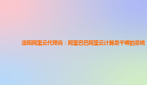 洛陽阿里云代理商:阿里巴巴阿里云計算是干嘛的?