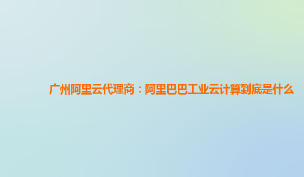 廣州阿里云代理商:阿里巴巴工業(yè)云計(jì)算到底是什么