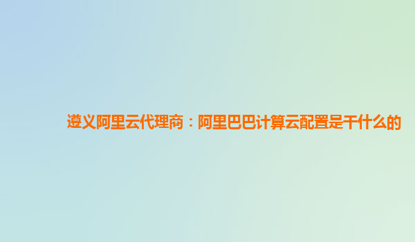 遵義阿里云代理商:阿里巴巴計算云配置是干什么的
