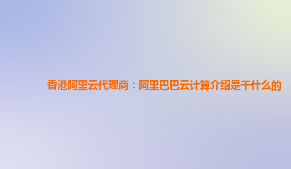 香港阿里云代理商:阿里巴巴云計算介紹