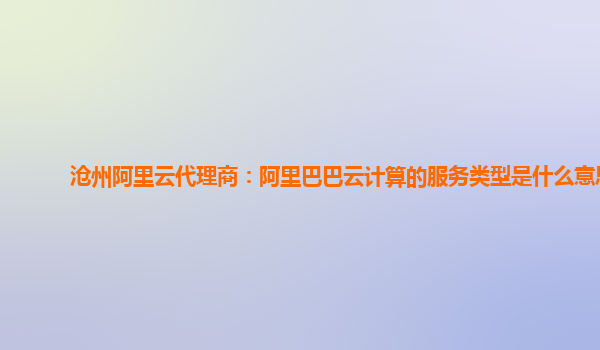 滄州阿里云代理商:阿里巴巴云計算的服務(wù)類型與優(yōu)勢