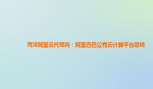 菏澤阿里云代理商:阿里巴巴公有云計算平臺是啥