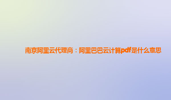 南京阿里云代理商:阿里巴巴云計(jì)算PDF是什么意思?