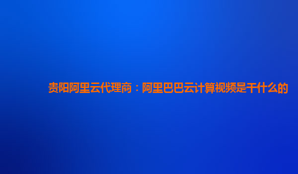 貴陽阿里云代理商:阿里巴巴云計算視頻是干什么的