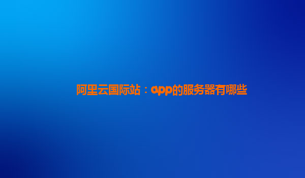 阿里云國際站:全面解析App服務器解決方案