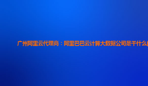 廣州阿里云代理商:阿里巴巴云計算大數(shù)據(jù)公司是干什么的