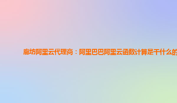 廊坊阿里云代理商:阿里巴巴阿里云函數(shù)計算是干什么的