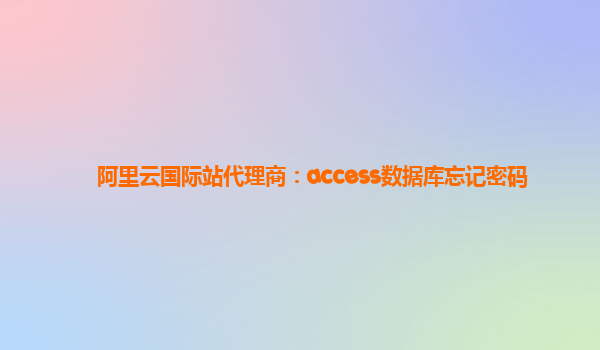 阿里云國際站代理商:Access數(shù)據(jù)庫忘記密碼的解決方法及阿里云的優(yōu)勢