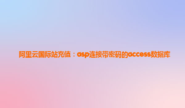 阿里云國際站充值:ASP連接帶密碼的Access數(shù)據(jù)庫