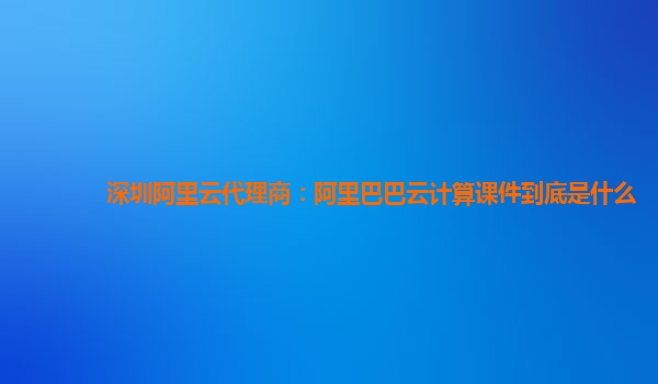 深圳阿里云代理商:阿里巴巴云計(jì)算課件到底是什么
