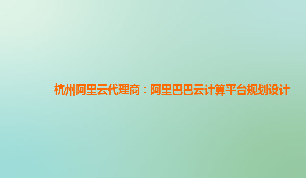 杭州阿里云代理商:阿里巴巴云計(jì)算平臺(tái)規(guī)劃設(shè)計(jì)
