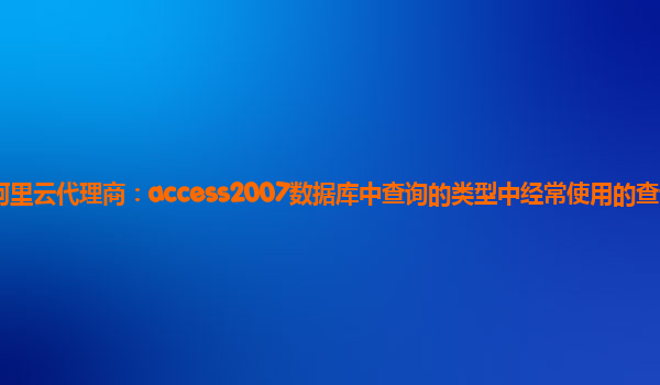 重慶阿里云代理商:Access 2007數(shù)據(jù)庫中常用查詢類型及阿里云的優(yōu)勢