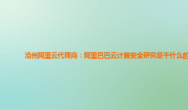 滄州阿里云代理商:阿里巴巴云計算安全研究是干什么的
