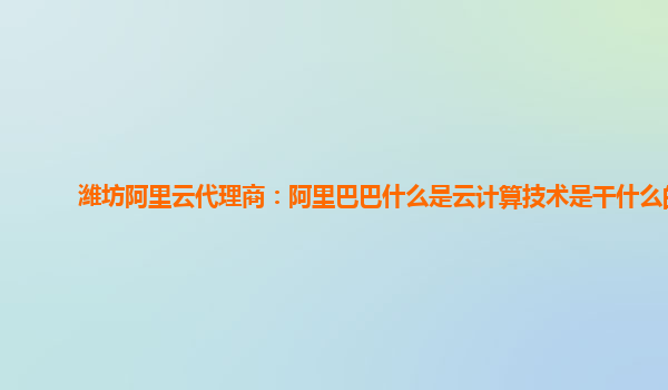 濰坊阿里云代理商:阿里巴巴什么是云計算技術(shù)是干什么的