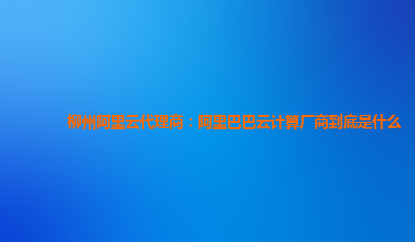 柳州阿里云代理商:阿里巴巴云計(jì)算廠商到底是什么
