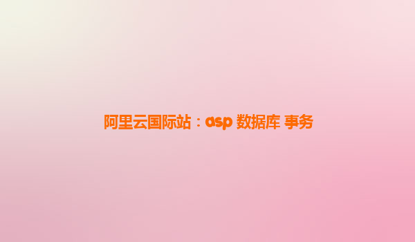阿里云國際站:ASP數(shù)據(jù)庫事務(wù)管理優(yōu)勢分析