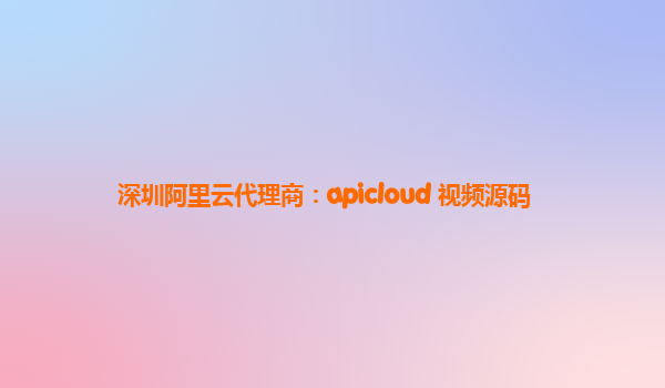 深圳阿里云代理商:apicloud 視頻源碼——助力企業(yè)云端騰飛