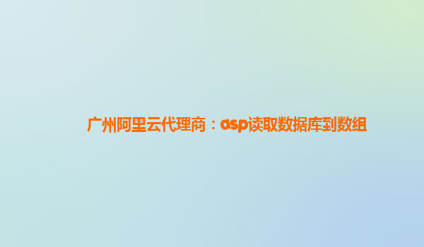 廣州阿里云代理商:ASP讀取數(shù)據(jù)庫到數(shù)組