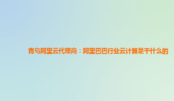 青島阿里云代理商:阿里巴巴行業(yè)云計(jì)算是干什么的
