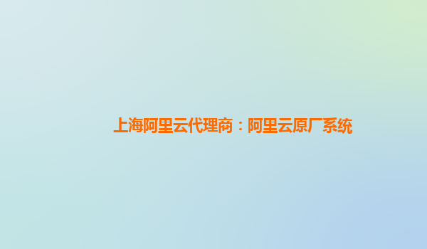 上海阿里云代理商:阿里云原廠系統(tǒng)的優(yōu)勢